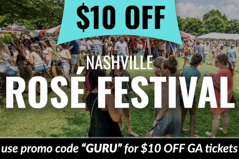 Use promo code “GURU” to get $10 OFF tickets to the Nashville Rosé Festival on Saturday, May 16, 2026!