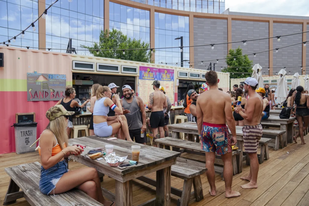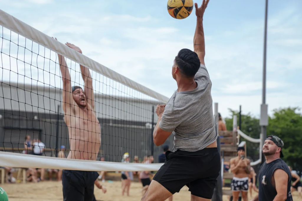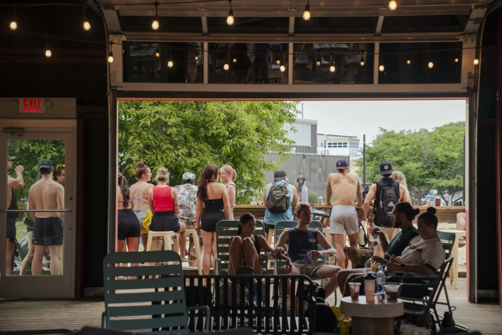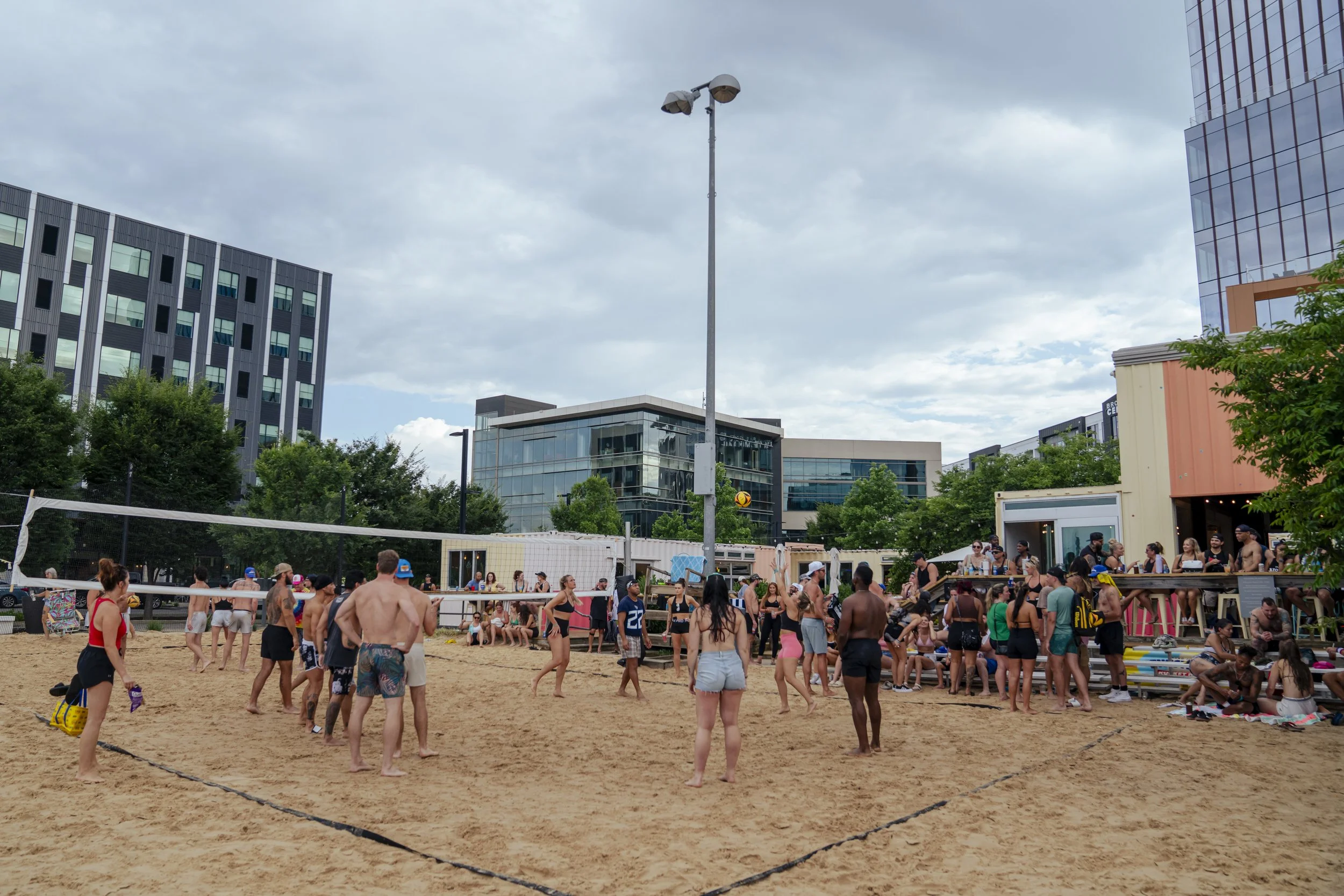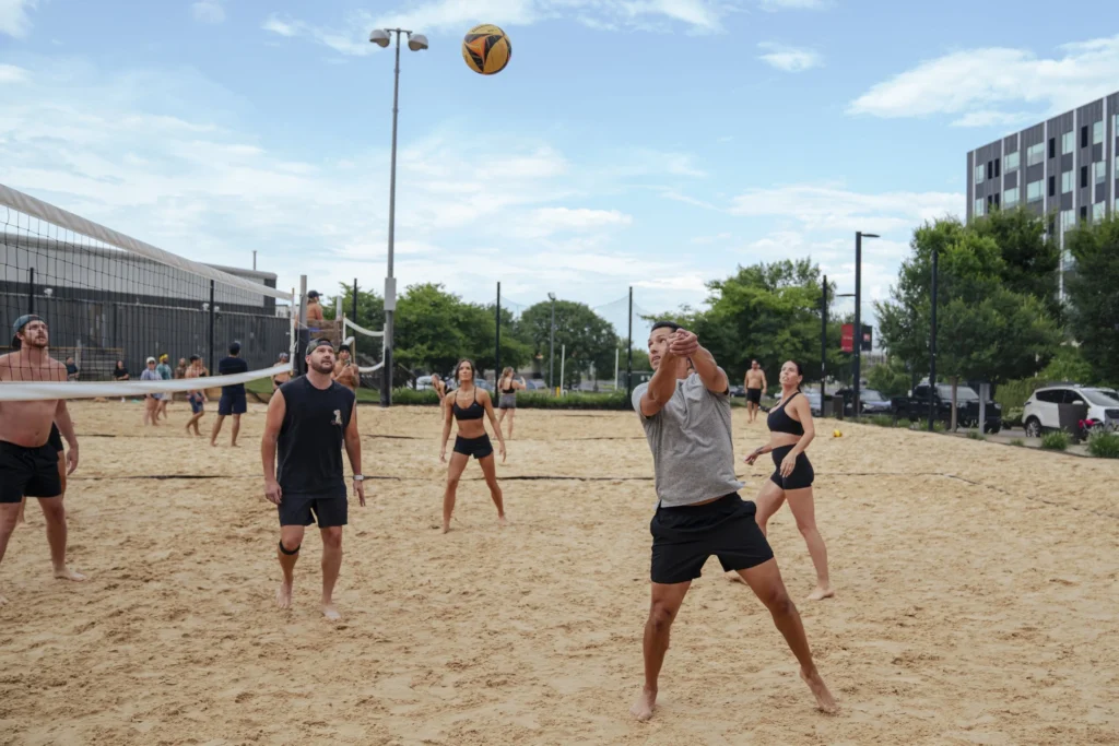 Transport yourself to the beach with sand volleyball at SandBar located in ONEC1TY! This tropical oasis features two sand volleyball courts open daily. Players can make reservations for guaranteed play Monday through Sunday from 9:00am to 11:00pm. Walk-ins are allowed if courts are available—guests can play free until the next reservation.