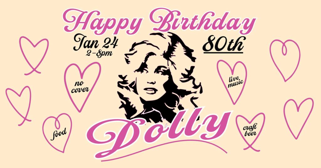 Celebrate Dolly Parton’s 80th birthday at the Dolly Parton Birthday Bash on Saturday, January 24, 2026, from 2:00pm to 8:00pm at Tennessee Brew Works. This celebration will feature craft beer, food, and live music from Erin Hazelrig and The Dolly Parton Tribute Band. Admission is free. Guests must be 21 and over only.