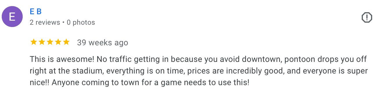 - A 15-minute water cruise on the Cumberland River to Downtown Nashville, dropping off right in front of Nissan Stadium at the East Bank Riverfront docks (see drop off location)