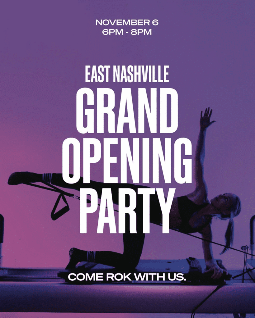 Bodyrok East has officially opened in east Nashville and is throwing a grand opening celebration. Join Bodyrok on Thursday, November 6, 2025, from 6:00pm to 8:00pm for a party with music, a raffle, prizes, specials, small bites, cocktails and more.