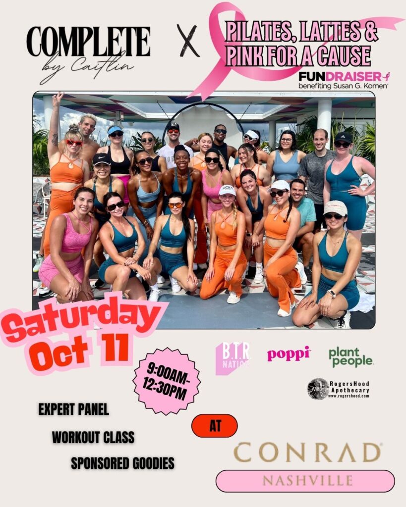 Pilates, Lattes & Pink For A Cause is on Saturday, October 11, 2025, from 9:00am to 12:30pm at The Conrad. This event, benefiting the Susan G. Komen Foundation, will feature a pilates workout with Caitlin Spears, a wellness panel with top experts, special guests, healthy bites, and more. Tickets are $135. Admission is 18 and over only.