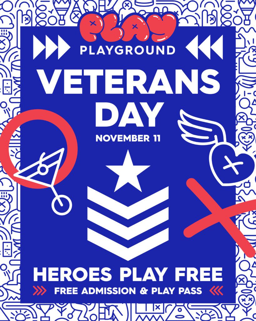 In honor of Veterans Day, all veterans and active-duty military members (with a valid military ID) are invited to enjoy a day of free play at Play Playground Nashville on Tuesday, November 11, 2025. Experience all that Play Playground Nashville has to offer, from giant games and skyline views to rooftop DJs. Operating hours on Tuesday are 4:00pm to midnight. All ages are welcome.