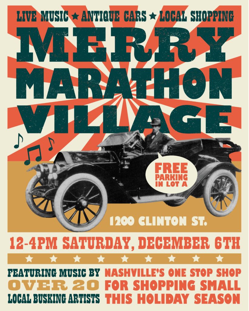 Merry Marathon Village will take place on Saturday, December 6, 2025, from noon to 4:00pm at Marathon Village. Come out and shop for local treasures during this holiday event while enjoying live tunes from amazing musicians. Attendees can also expect antique cars and vintage charm. Admission is free. All ages are welcome.