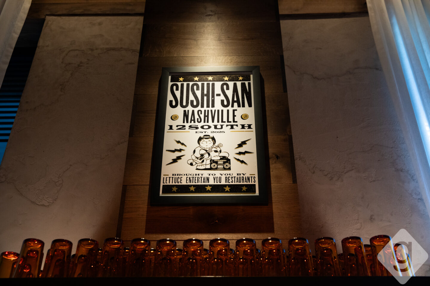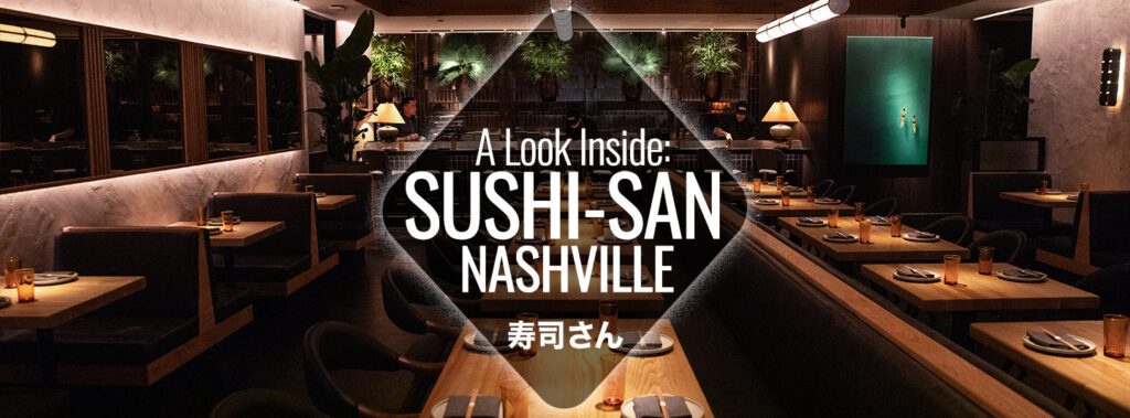 Sushi-san, the popular Chicago-based Japanese restaurant from Lettuce Entertain You Restaurants (also behind Aba), officially opened in Nashville’s 12 South neighborhood on Wednesday, November 12, 2025. This marks the restaurant’s first location outside of the Chicago area. Sushi-san is best known for its super-fresh fish, deep sake, extensive Japanese whisky offerings, and old-school hip hop on the stereo. Nashville’s location already has a five-star Google rating from over 280 reviewers. Nashville Guru stopped by to get a look inside the new buzz-worthy destination.
