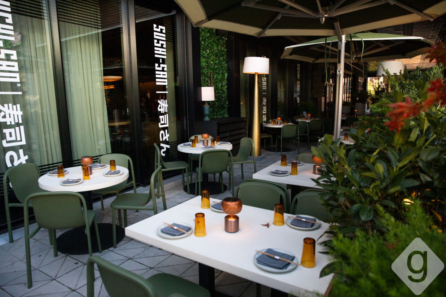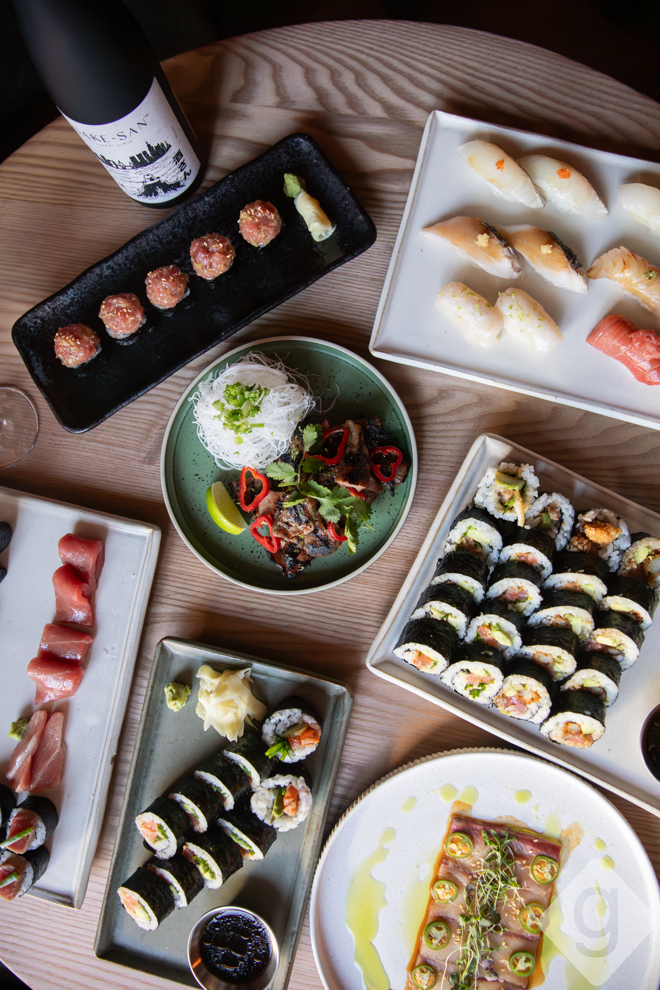 On the beverage side, expect 65 Japanese whiskies, blast-chilled Asahi draft, and cocktails using Japanese ingredients. Sushi-san’s sake list offers over 20 options, too, including the restaurant’s own private label, Sake-san, brewed in Osaka.