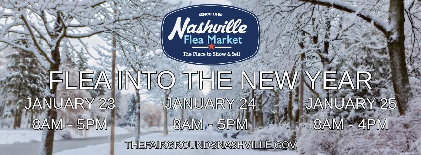 The Nashville Flea Market: Flea Into The New Year Market is Friday through Sunday, January 23-25, 2026, at The Fairgrounds Nashville. This event will celebrate the new year with a variety of local and regional vendors. Admission is free. Parking is $10 (cash only).