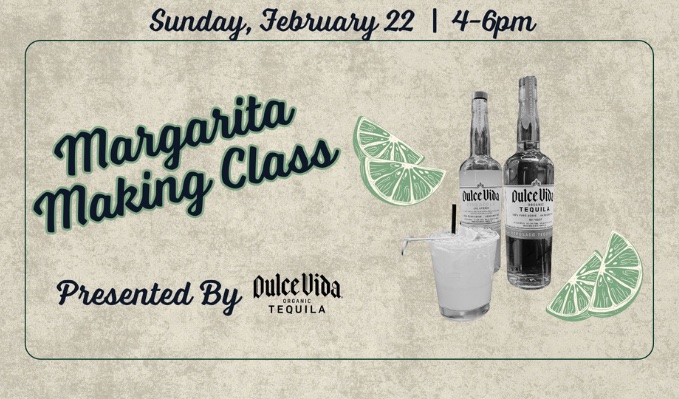 The Margarita Making Class at Sports & Social Green Hills is Sunday, February 22, 2026, from 4:00pm to 6:00pm. This National Margarita Day celebration will feature a hands-on mixology experience presented by Dulce Vida Tequila. The cost is $30. Participants must be 21 and over only.