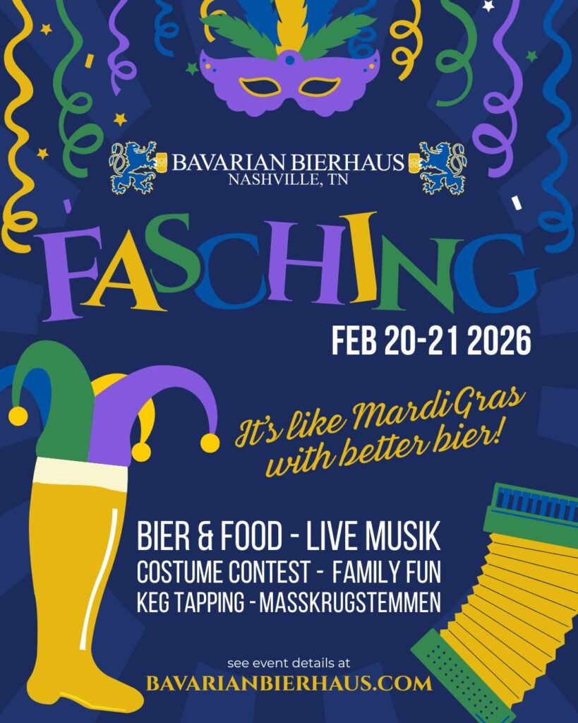 Celebrate Fasching—a centuries-old tradition where normal rules are tossed out the window—on Friday and Saturday, February 20-21, 2026, at Bavarian Bierhaus. This family-friendly event is like Mardi Gras with better bier! Expect beer, food, music, a costume contest, a keg tapping, and a stein-holding competition. Guests are encouraged to wear masks and dress in costumes. Admission is free and open to all ages.
