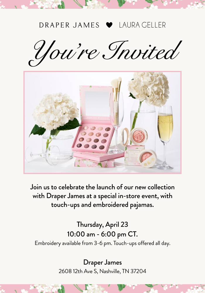The Draper James x Laura Geller Launch Party will take place on Thursday, April 23, 2026, from 10:00am to 6:00pm at Draper James on 12 South. This event will celebrate the launch of an exclusive Laura Geller collection with Draper James, designed for every Mom who deserves to feel effortlessly polished. Attendees can also expect makeup touch-ups and pajama embroidery. Admission is free and open to all ages.