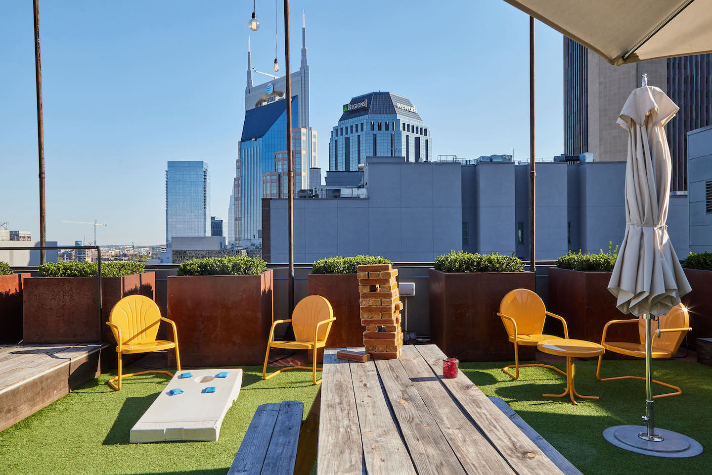 Rivière Rooftop is one of Downtown Nashville’s most elegant rooftops, situated on the seventh floor of the Four Seasons Hotel Nashville. Soak in the skyline views, sip handcrafted cocktails, lounge by the fire pits, and enjoy the regular weekend entertainment. This rooftop is just a short walk from Lower Broadway, but far enough from the honky-tonk hubbub.