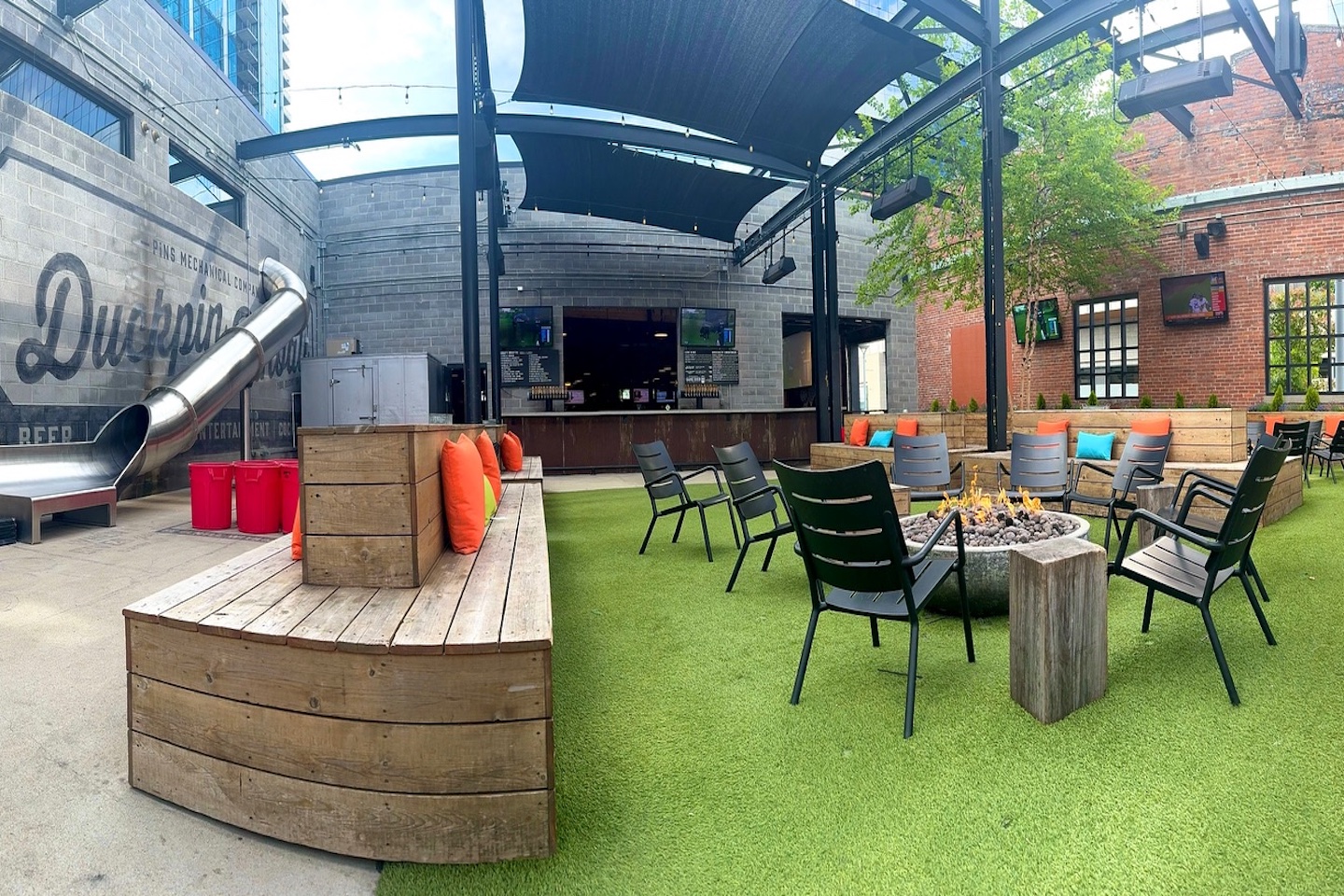 Pins Mechanical Co. is a great destination for indoor or outdoor fun. Inside, you’ll find classic arcade and video games, duckpin bowling, themed pinball machines, foosball, and bocce ball. Outside, there is plenty of seating, fire pits, and occasional food trucks.