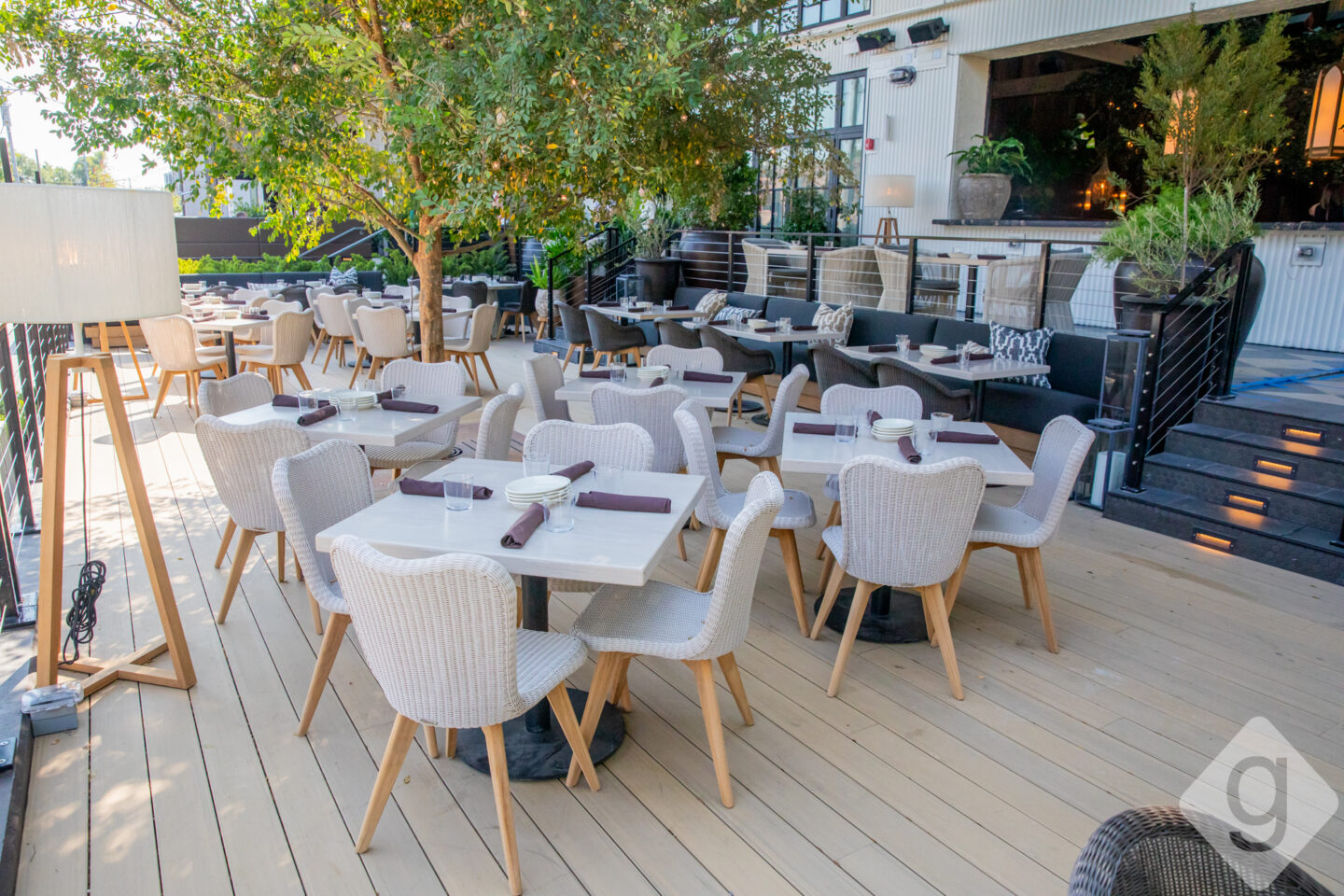 Savor Mediterranean-inspired options at Aba while dining on their spacious wraparound patio. During colder months, guests can expect partial coverage and open-air patio areas with heaters. This popular eatery features Nashville’s largest fine dining patio.
