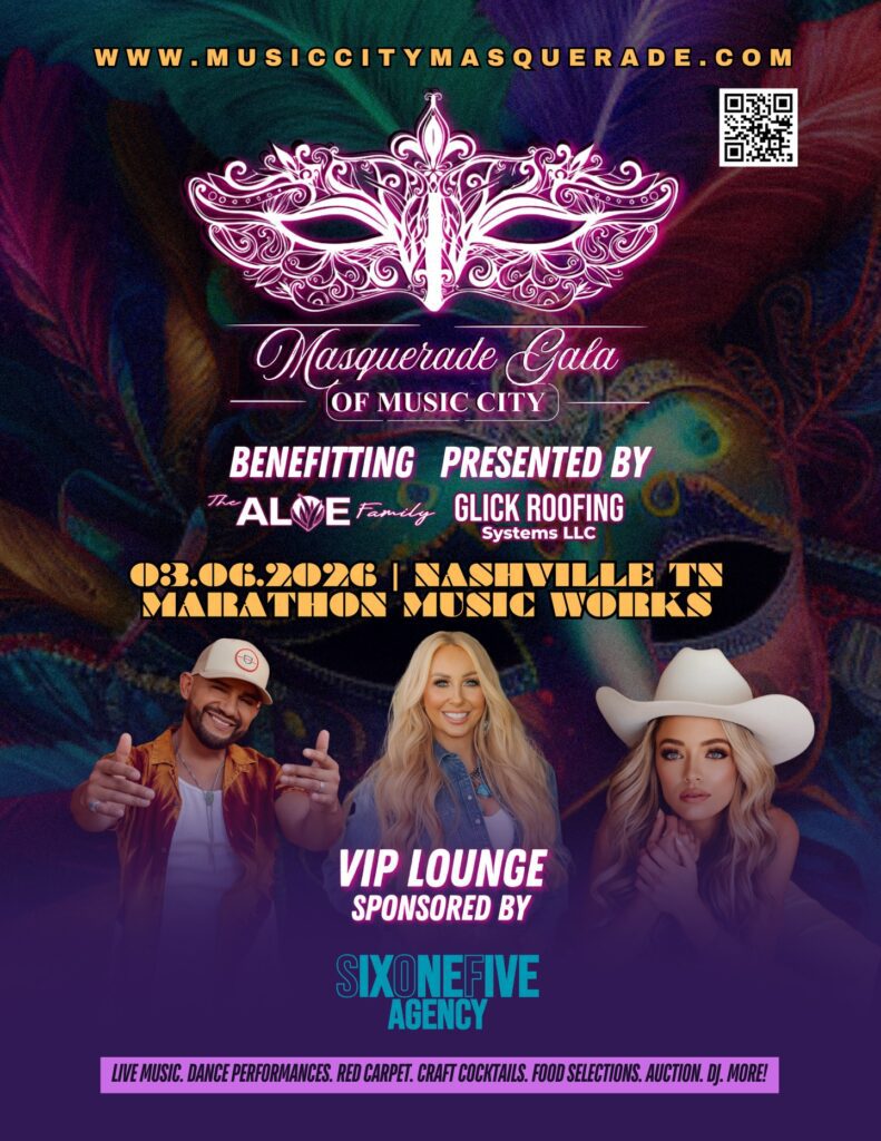 The annual Masquerade Gala of Music City will take place at Marathon Music Works on Friday, March 6, 2026. This event benefits The Aloe Family, a locally based nonprofit that provides education, job training, and essential resources to underserved communities in Nashville and Latin America. Attendees can expect an unforgettable evening with magicians, aerial performers, live music and dancing, guest speakers, a silent auction, and more. This year’s sponsor is Glick Roofing Systems. Doors open at 7:00pm. Admission is 18 and over only. Tickets can be purchased here.