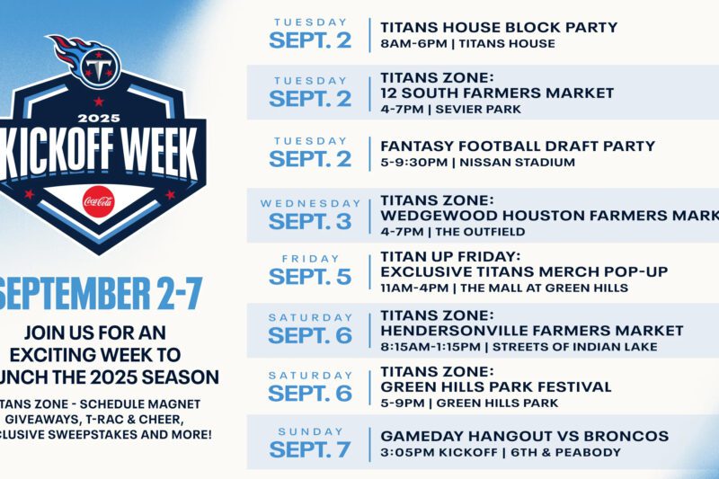 Football is back! Titans Kickoff Week is Tuesday through Sunday, September 2-7, …read more