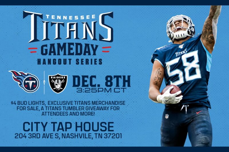 The Titans Gameday Hangout Series is Sunday, December 8, 2019, from 3:00pm …read more