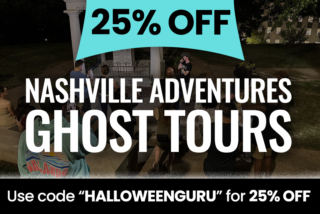 Use promo code HALLOWEENGURU to get 25% OFF tickets to Ghost Tours and Cemetery Tours with Nashville Adventures .