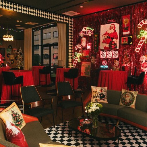 Happy hour from 2:00pm to 5:00pm includes a special happy hour food menu, $5 house wines, and $5 select beers—for an extra $7, elevate your glass of wine with a Charcuterie Board Wine Glass Topper.